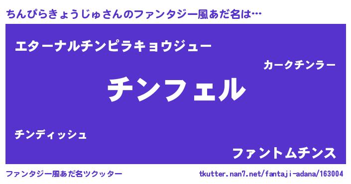 | 自動車の名前っぽいあだ名 | 『プリチン』『チスラー』『チント』 |