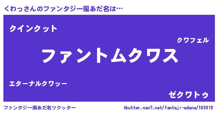 | 男性向けラノベタイトル風あだ名 | 『はたらくくわっさま!』『くわっの憂鬱』 |