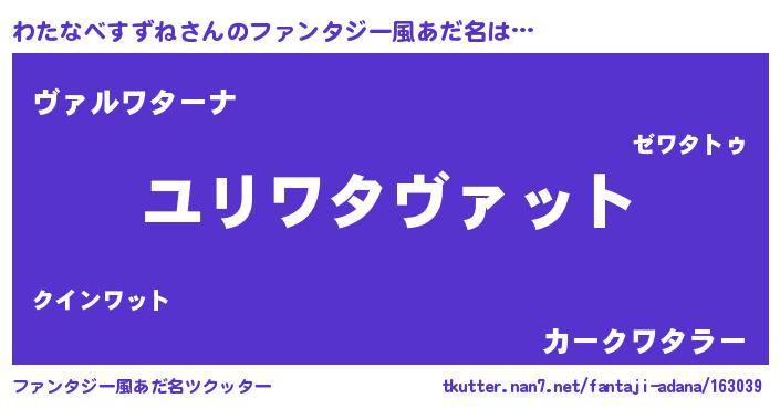| ヒーロー風カッコイイあだ名 | 『仮面ワタダー』『幻影騎士ワタ』 |