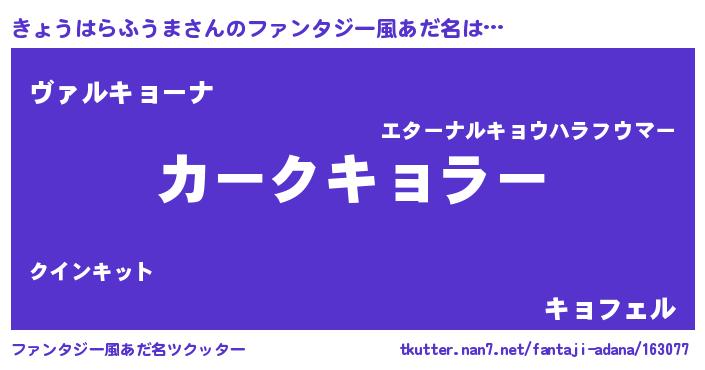 | 欧米人風あだ名 | 『アンジェラ・きょうはらふうま』 |