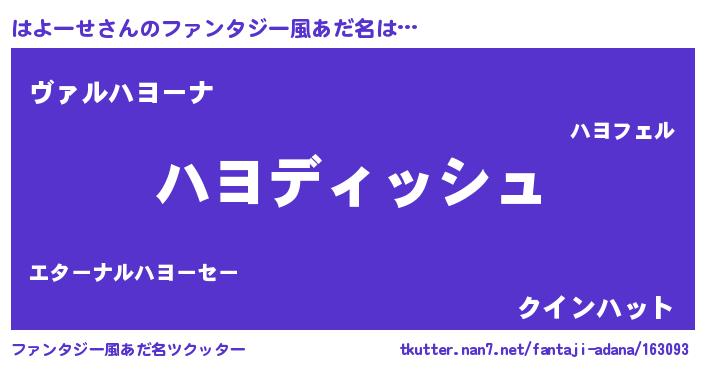 | ヒーロー風カッコイイあだ名 | 『ネオハヨーセ』『仮面ハヨダー』 |