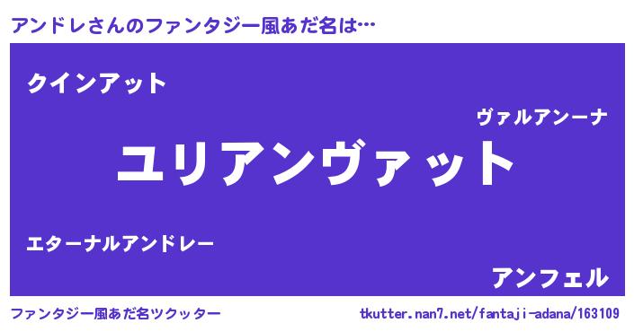 男性向けラノベタイトル風あだ名 | 『アンドレ~年齢イコール彼女いない歴の魔法使い~』 |