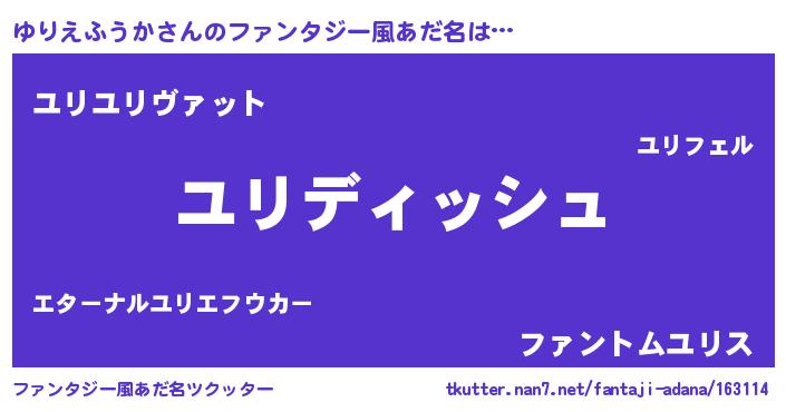 | ヘコむあだ名 | 『ゆりえふうか(遠い目)』『ゆりを』 |