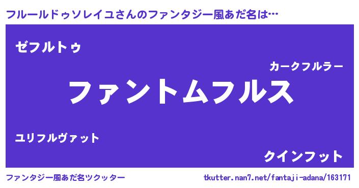 | 男性向けラノベタイトル風あだ名 | 『ダンジョンにフルールドゥソレイユを求めるのは間違っているだろうか』 |