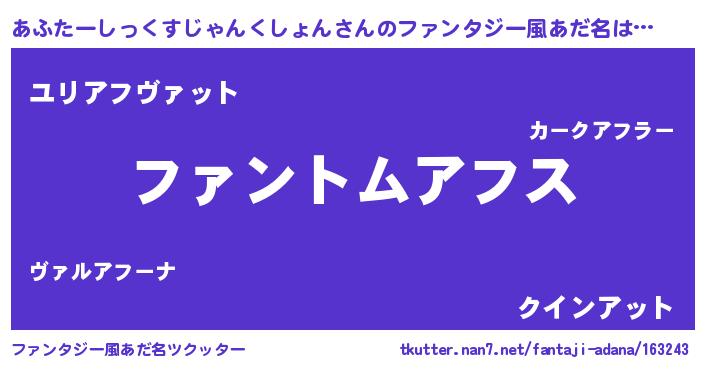 | ヒーロー風カッコイイあだ名 | 『天弓騎士アフ』『仮面アフダー』 |