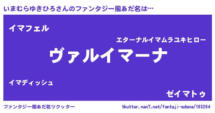 | ヒーロー風カッコイイあだ名 | 『仮面イマダー』『ネオイマムラユキヒロ』 |