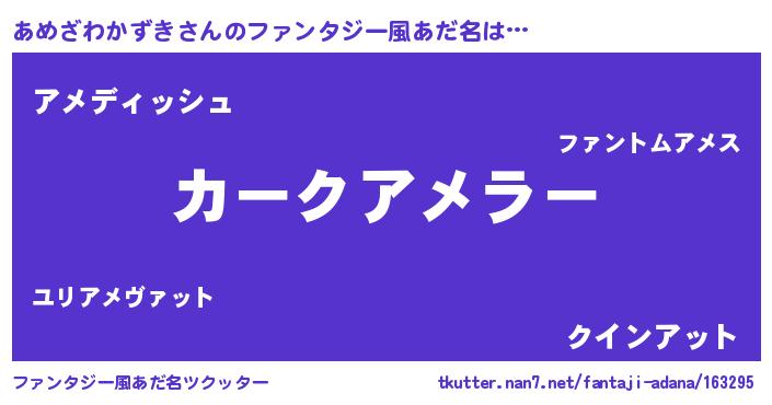 | 伝説のあだ名 | 『古より伝わる吟遊詩人あめざわかずき』 |