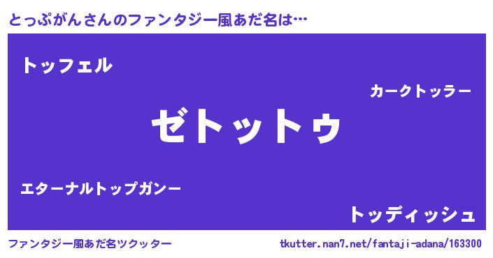| 意味不明あだ名 | 『自称とっぷがん』『ペロリンとっぷがん』 |