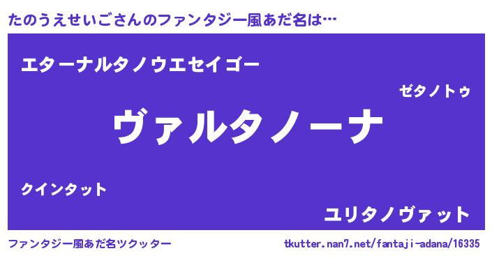 | 男性向けラノベタイトル風あだ名 | 『この素晴らしい世界にたのうえせいごを!』 |