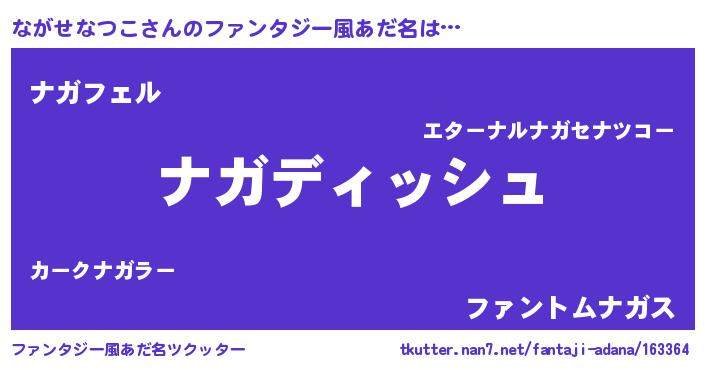 | 女子向けラノベタイトル風あだ名 | 『異世界で失敗しない100のながせなつこ』 |