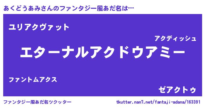 | 意味不明あだ名 | 『あくどうあみフォーエバー』 |