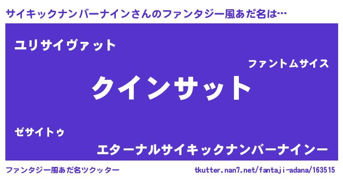 | 女子向けラノベタイトル風あだ名 | 『サイキックナンバーナイン恋絵巻』 |
