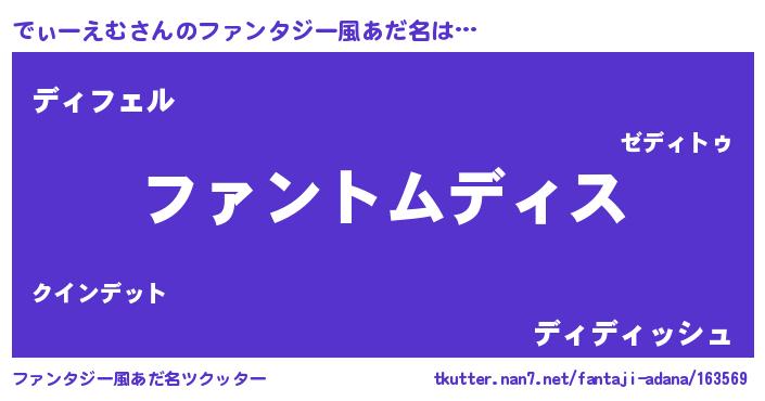 | ヘコむあだ名 | 『でぃぷりん』『でぃもー』 |