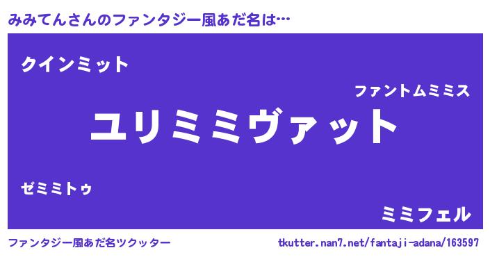 | 意味不明あだ名 | 『めかぶ科みみてん属』『自称みみてん』 |