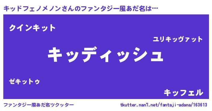| 意味不明あだ名 | 『永久保存キッドフェノメノン』 |