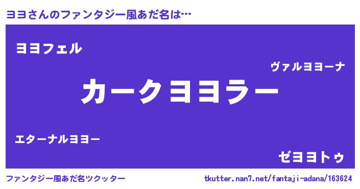 | 自動車の名前っぽいあだ名 | 『フェヨーヨ』『ヨヨティマ』 |