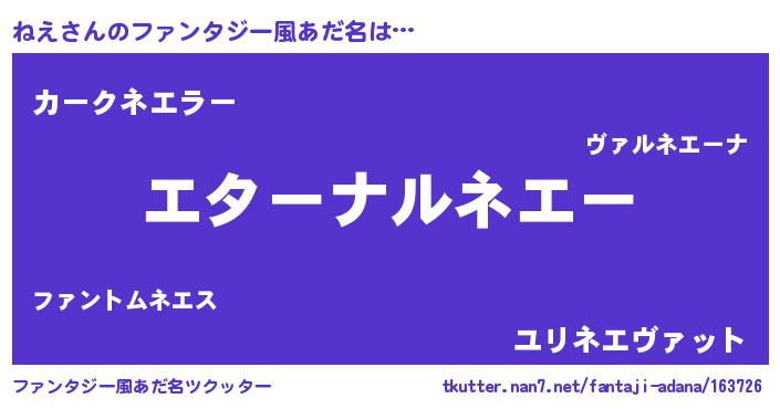 | 女子向けラノベタイトル風あだ名 | 『ねえの雑貨屋さん』『ねえは平凡を望む』 |