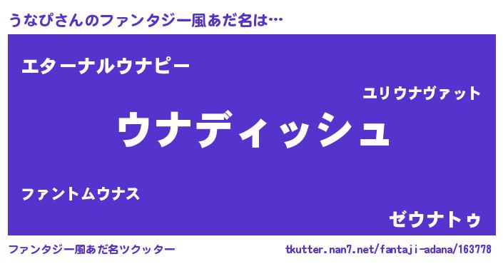 | ヒーロー風カッコイイあだ名 | 『ネオウナピ』『ウルトラうなぴマン』 |