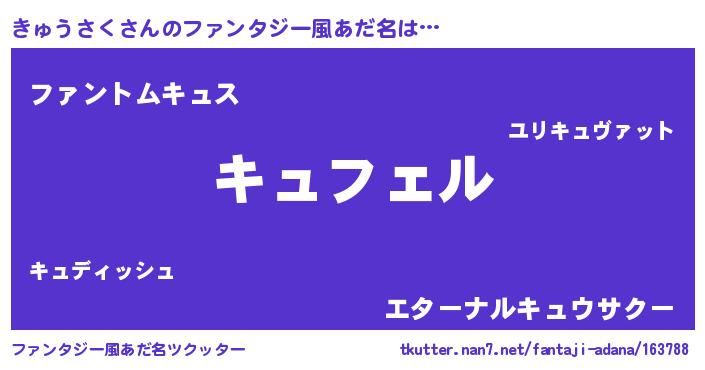 | ヒーロー風カッコイイあだ名 | 『スーパーキュウサク』『幻影騎士キュ』 |