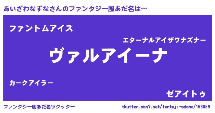 | 男性向けラノベタイトル風あだ名 | 『この素晴らしい世界にあいざわなずなを!』 |