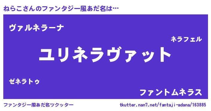 | 男性向けラノベタイトル風あだ名 | 『転生したらねらこだった件』 |