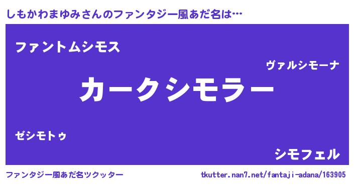 | 欧米人風あだ名 | 『しもかわまゆみ・ステッグマイヤー』 |
