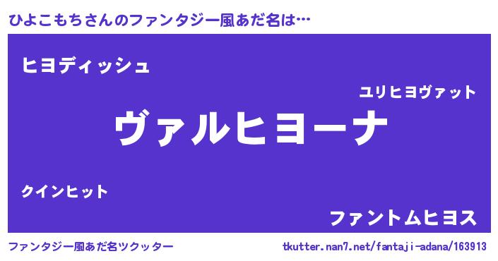 | 男性向けラノベタイトル風あだ名 | 『この素晴らしい世界にひよこもちを!』 |