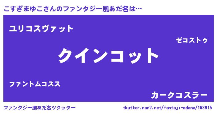 | ヒーロー風カッコイイあだ名 | 『慈愛の使者こすぎまゆこ』 |