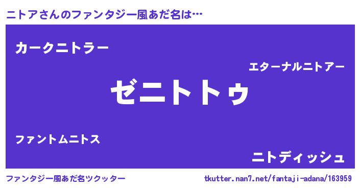 | 意味不明あだ名 | 『自称ニトア』『永久保存ニトア』 |