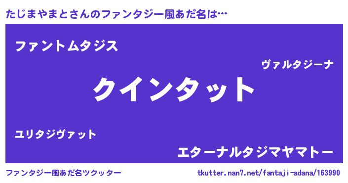 | ポケモン風あだ名 | 『タックウザ』『ヒタジマヤマト』 |