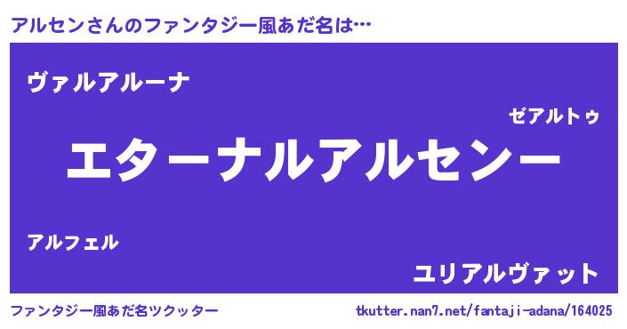 | 女子向けラノベタイトル風あだ名 | 『アルセンの雑貨屋さん』『闇のアルセン』 |