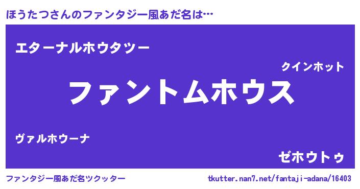 | 女子向けラノベタイトル風あだ名 | 『ほうたつ様がみてる』『闇のほうたつ』 |