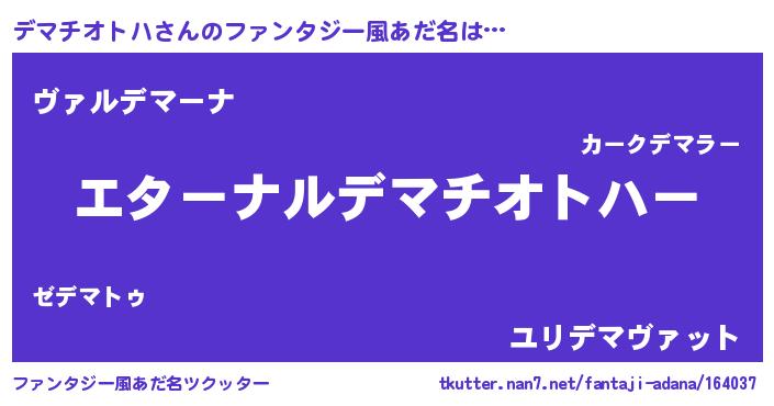 | 女子向けラノベタイトル風あだ名 | 『デマチオトハの雑貨屋さん』 |