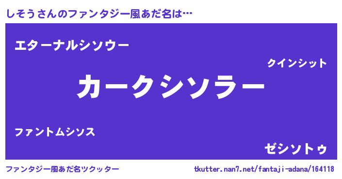| 男性向けラノベタイトル風あだ名 | 『緋弾のシソウ』 |