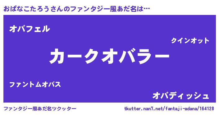 | ヒーロー風カッコイイあだ名 | 『スーパーオバナコタロウ』 |