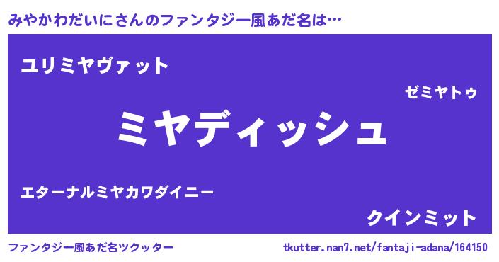 | 欧米人風あだ名 | 『ダルビッシュみやかわだいに』 |
