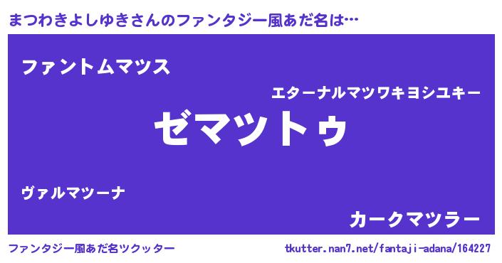 | ポケモン風あだ名 | 『マツセウス』『ヒマツワキヨシユキ』 |