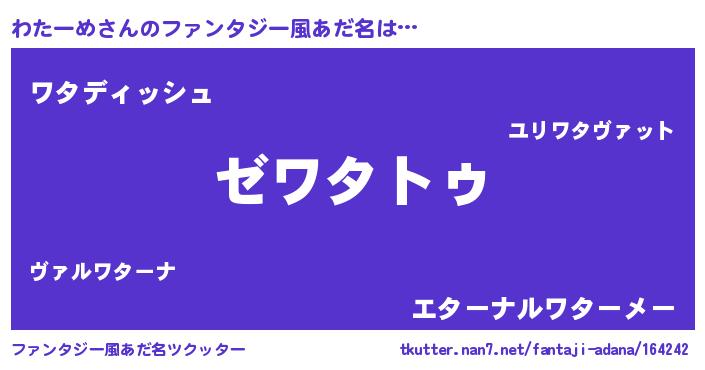 | 意味不明あだ名 | 『自称わたーめ』『永久保存わたーめ』 |
