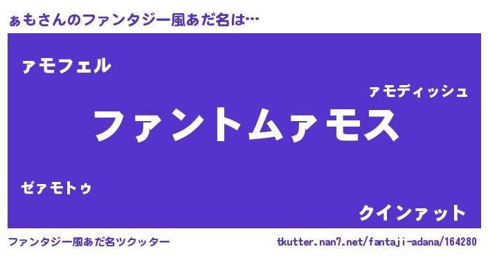 | ポケモン風あだ名 | 『ヒァモ』『ァモチュウ』『ゼニァモ』 |