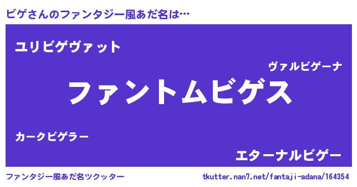 | ヒーロー風カッコイイあだ名 | 『幻影騎士ビゲ』『ウルトラビゲマン』 |
