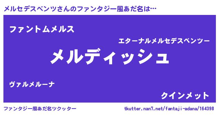| ヒーロー風カッコイイあだ名 | 『ネオメルセデスベンツ』『黄金騎士メル』 |