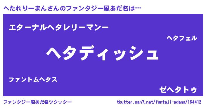 | ヒーロー風カッコイイあだ名 | 『ネオヘタレリーマン』『魔戒騎士ヘタ』 |