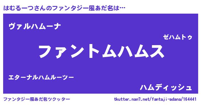 | 女子向けラノベタイトル風あだ名 | 『はむるーつは平凡を望む』 |