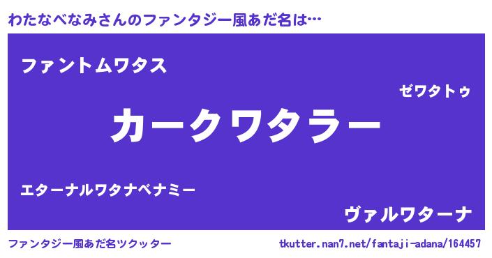 | 意味不明あだ名 | 『とにかく怪しいわたなべなみ』 |