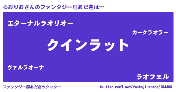 | 男性向けラノベタイトル風あだ名 | 『ノーゲーム・ノーラオリオ』 |