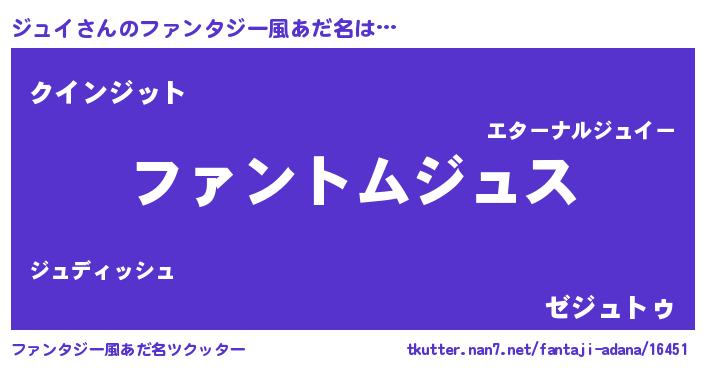 | ヒーロー風カッコイイあだ名 | 『暗黒騎士ジュ』『正義の使者ジュイ』 |