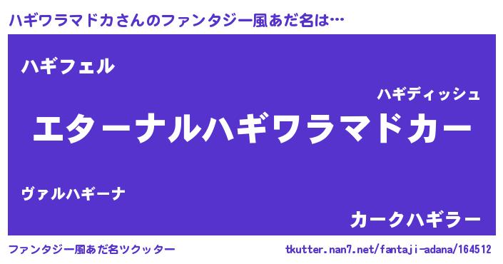 | ヒーロー風カッコイイあだ名 | 『ウルトラハギワラマドカマン』 |
