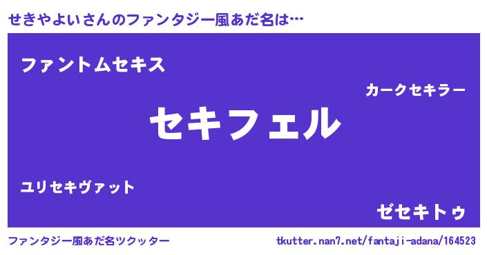 | 女子向けラノベタイトル風あだ名 | 『(仮)せきやよいのやんごとなき事情』 |