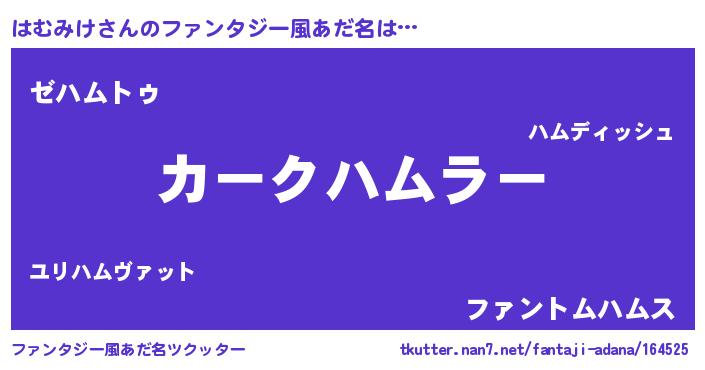 | 意味不明あだ名 | 『自称はむみけ』『永久保存はむみけ』 |