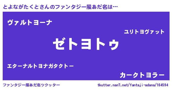 | 男性向けラノベタイトル風あだ名 | 『Re:とよながたくとから始める異世界生活』 |